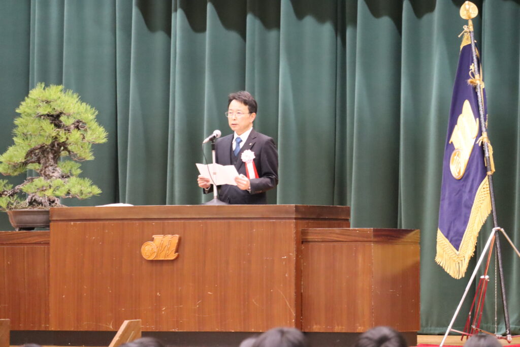 続いて行われた始業式では、校長より式辞があり、生徒たちに向けて温かく力強いメッセージが送られました。